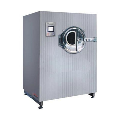 Die Tabletten in der Trommel machen schwierige und konstante Bahnbewegung mit dem einfachem und des Feindrehens häufigen Austausch in einer sauberen und geschlossenen Trommel der Filmbeschichtungsmaschine. Die beschichtende Mischrunde in der Mischtrommel werden auf Tabletten durch die Farbspritzpistole an der Einlass-UNO-Aktion der Peristaltik-Pumpe gesprüht. Unterdessen unter wird der Aktion der sauberen Heißluft der Luftabsaugung und des Unterdrucks 100.000, die durch das Luftabsaugungskabinett geliefert wird, vom Ventilator an den Siebmaschen durch Tabletten erschöpft. So erhalten diese beschichtenden Medien auf der Oberfläche von Tabletten trocken, einen Mantel des festen, feinen und glatten Filmes bildend. Der ganze Prozess ist unter Kontrolle PLC fertig.