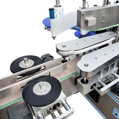 3 der Behälter, die Presseplatteneinheit, die Druckrolle durchzulaufen, die Rotation des Behälters zu führen, der Aufkleber wird gedrückt, um glatt zu passen, die Kennzeichnungsoperation ist fertig.