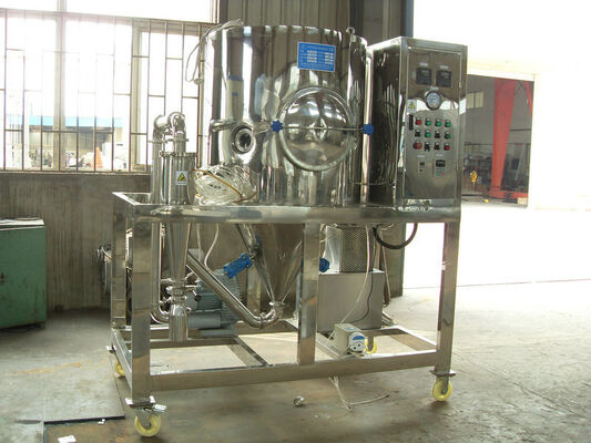 Nimmt einzelne Positionssprühtrocknung an, um den flüssigen Tropfen und die Heißluft laufend in der gleichen Position zu machen. Obgleich die Temperatur der Luft hoch ist, tritt die Heißluft mit flüssigem Rückgang kommt einmal in Trocknerbehälter in Verbindung. So verringerte sich die Temperatur sofort, um das Material aus Über heraus zu schützen erhitzt. Dieses ist Maschine wird gepasst auch für die Materialien, die mit Heizung empfindlich sind.